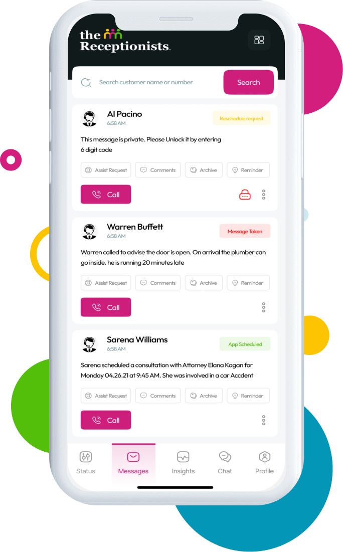 Need an appointment rescheduled? No time to respond to prospective clients? Submit an Assist request through the app and we’ll place an outbound call on your behalf.