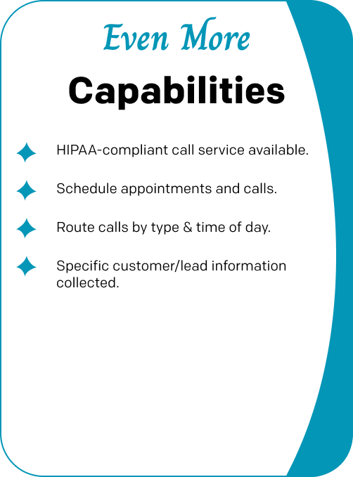 ● If you have a HIPAA compliant scheduling tool that our Receptionists can access without a login, they can schedule appointments for your callers.